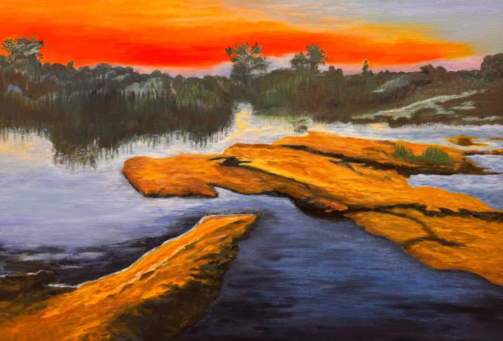 Au bord de la rivière, 33×41 cm, acrylique sur toile